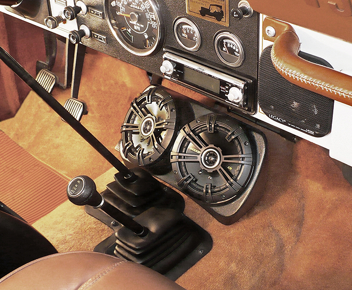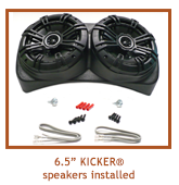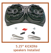 The Centra-Pod™ is a fantastic addition to your Jeep CJ or YJ sound system. This unique speaker housing rests in front of the shifters and directs sound toward both the driver and passenger. The Centra-Pod™ is available empty so you can add speakers of your choice, and is also offered with speakers included: choose either Kicker® 5.25” or Kicker®6.5” speakers! (Note: many other 6.5” speakers may/may not fit in the Centra-Pod™.) When you purchase the empty version of the Centra-Pod™, it comes with pre-cut holes meant to accept most 5.25” speakers, so if you wish to add your own 6.5” speakers, you will probably have to cut the holes larger with a rotary cutout tool or a jig saw. Check the fit of the grilles that come with those speakers too- some 6.5” grilles are quite large and may not fit on the face of the pod correctly. (When you buy the pod offered with the Kicker® 6.5” speakers included, it will arrive with the holes already precut specifically for those speakers.)