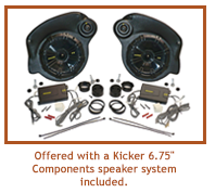 Version 2: You can get the pods with Kicker® 6.75” Component speakers included. The tweeter holes are pre-cut and ready for the Kicker Component System. You will need to supply your own amplifier and its’ wiring and connectors with this version.