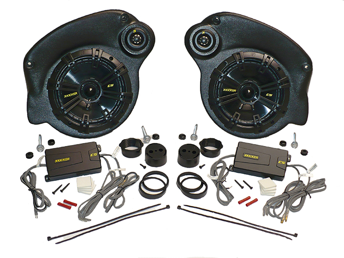 Version 3: You can get the pods with the Kicker 6.75” Component speakers, a Kicker 2-channel amplifier, an 8-gauge amplifier wiring kit and all necessary connectors and hardware to incorporate the pods into your current sound system whether it’s factory or modified.