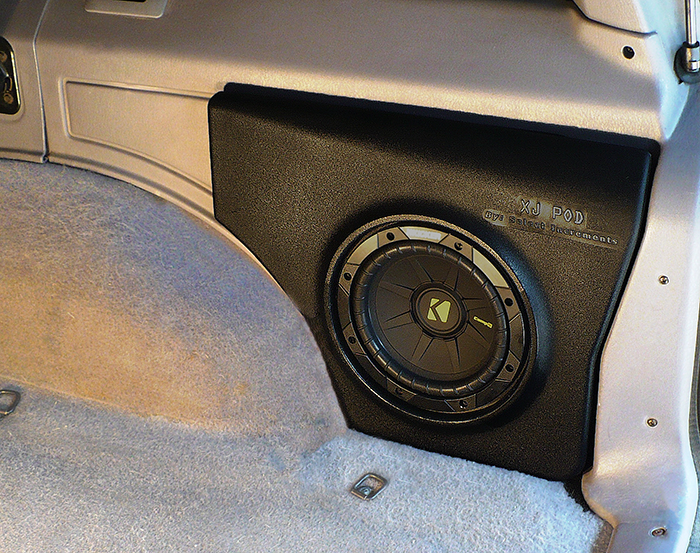 A simple and economical way to improve your tunes, the XJ-Pod™ will add some real depth to your current audio system by mounting seamlessly in the passenger-side rear cargo-area panel of all '84-'01 Jeep Cherokees. The XJ-Pod™ is constructed of sturdy, textured plastic and provides a neat, factory appearance without using up any cargo space! The XJ-Pod™ accepts one 8” subwoofer and boasts a sealed-chamber design that delivers tight mid and low-end audio response in .40 cubic feet of volume. A concealed wire-lead hole at the base of the pod allows for a tidy installation.